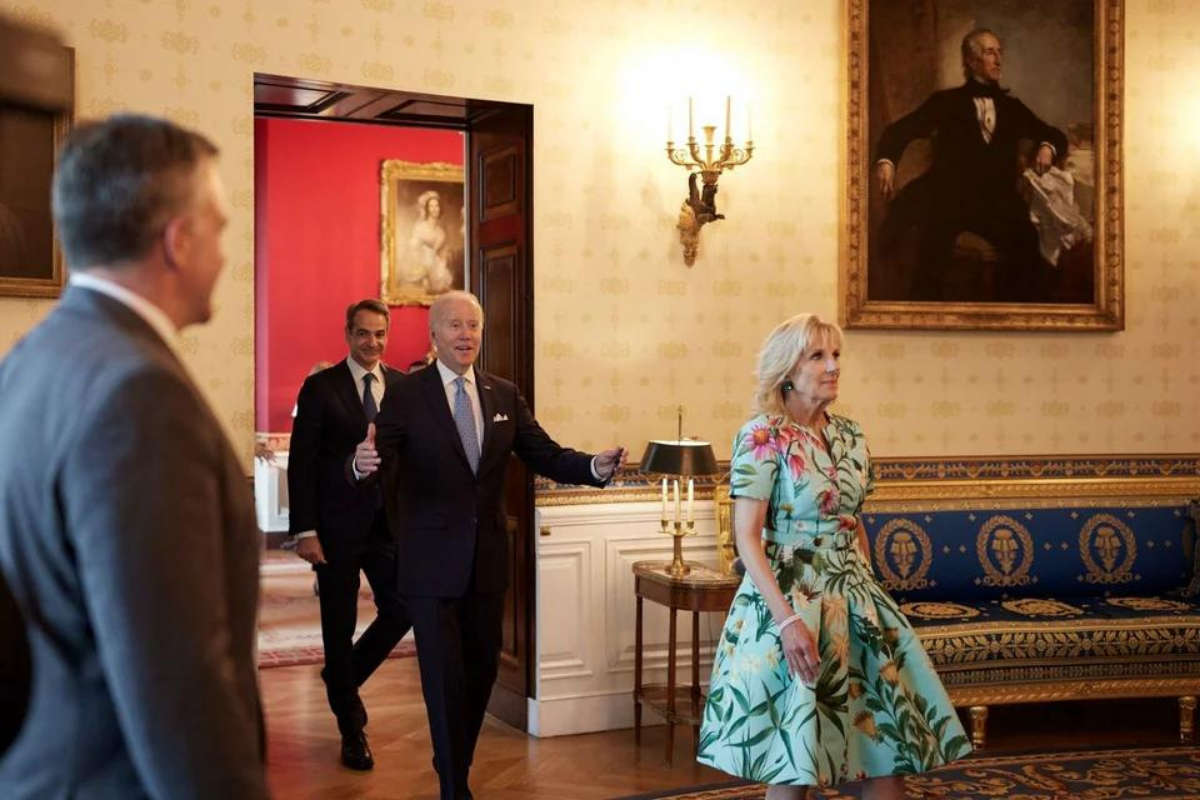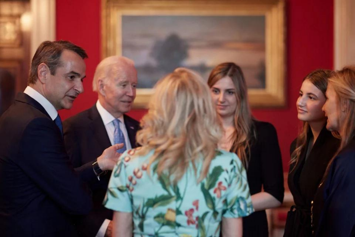 Τον Λευκό Οίκο επισκέφθηκαν ο Κυριάκος Μητσοτάκης με τη σύζυγό του, Μαρέβα και τις δύο κόρες τους, Δάφνη και Σοφία, όπου τους υποδέχθηκαν, παραδίδοντας μαθήματα φιλοξενίας, ο Πρόεδρος Joe Biden και η Πρώτη Κυρία των ΗΠΑ, Jill Biden.
