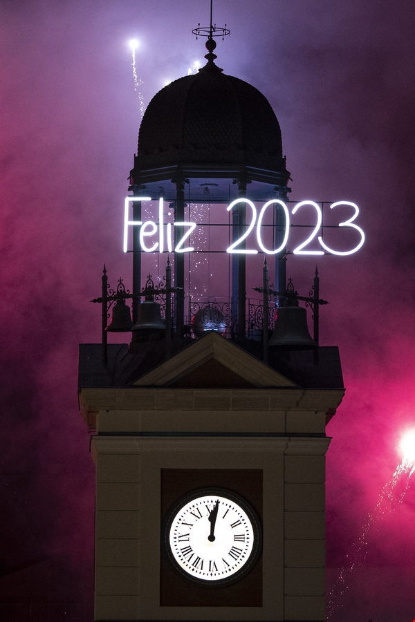 Μπροστά από την Πουέρτα ντελ Σολ στη Μαδρίτη εκατομμύρια άνθρωποι έφαγαν σταφύλια τα τελευταία 12 δευτερόλεπτα του 2022: ένα έθιμο που τηρεί η πλειονότητα των Ισπανών.