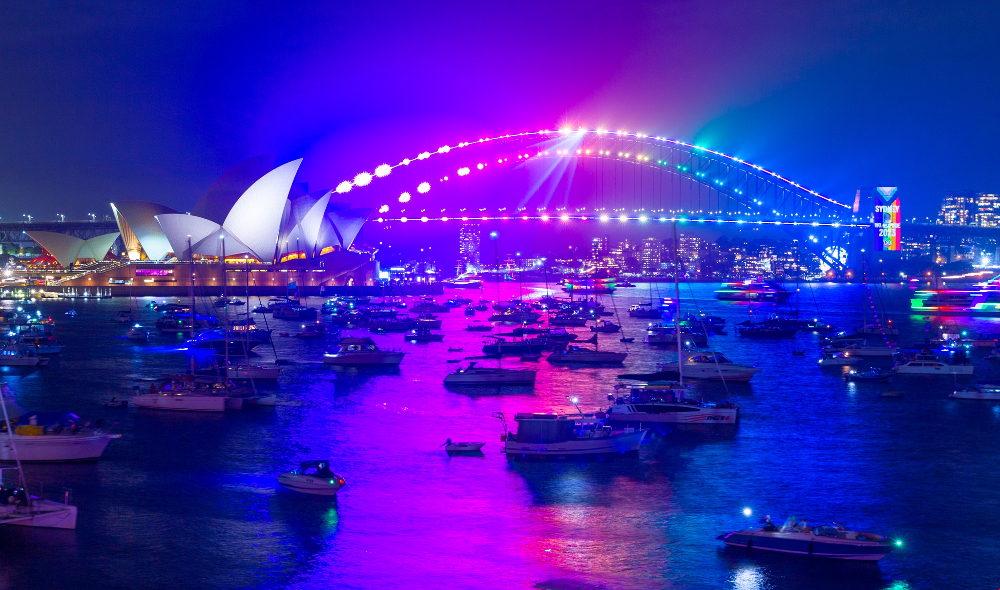 Δεκατέσσερις ώρες νωρίτερα, στην άλλη άκρη του κόσμου, το Σίνδεϊ της Αυστραλίας ήταν μία από τις πρώτες μεγάλες πόλεις που υποδέχθηκαν το 2023, ανακτώντας τον τίτλο της "παγκόσμιας πρωτεύουσας του ρεβεγιόν", έπειτα από δύο χρόνια περιορισμών λόγω της covid-19.