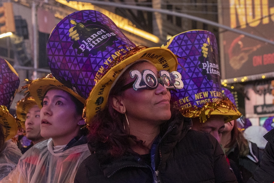 Στη Νέα Υόρκη πολλοί ήταν αυτοί που αψήφησαν το κρύο και τη βροχή και συγκεντρώθηκαν στην Τάιμς Σκουέρ για να μετρήσουν ανάποδα για την έλευση της νέας χρονιάς και να παρακολουθήσουν από κοντά την πτώση της μπάλας που σηματοδοτεί την αλλαγή του χρόνου, ένα έθιμο που ξεκίνησε το 1907.
