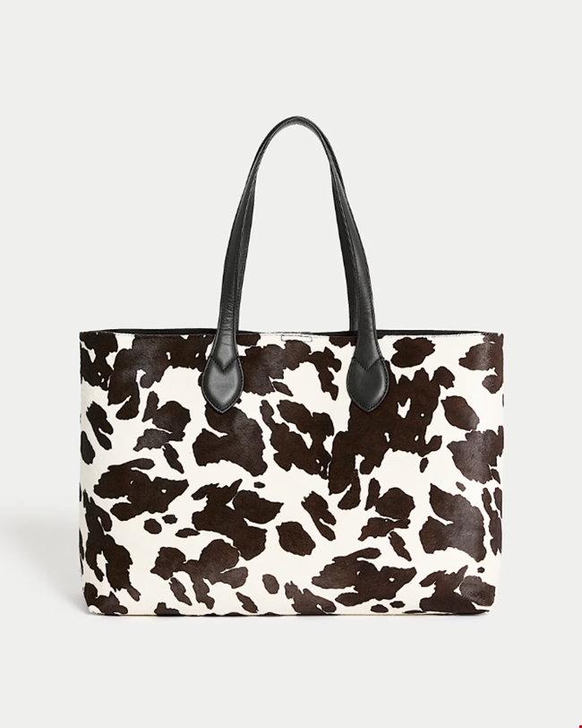 Τσάντα ώμου με animal print από δέρμα με τρίχες, Marks&Spencer