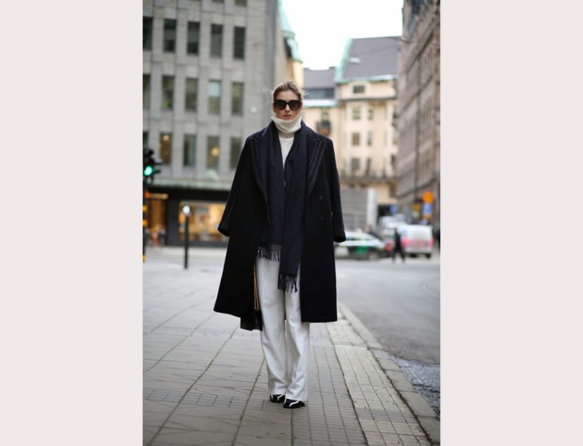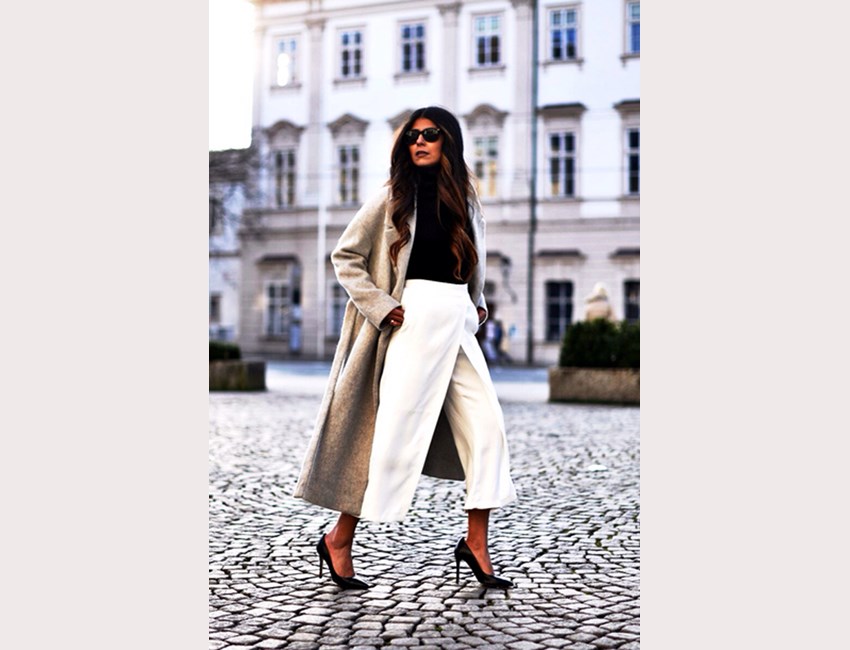 Το λευκό ως παράδοξη τάση του Χειμώνα συνδυάζεται με wide-leg pants για μία ιδιαίτερη, stylish εμφάνιση (via Camille Over the Rainbow)