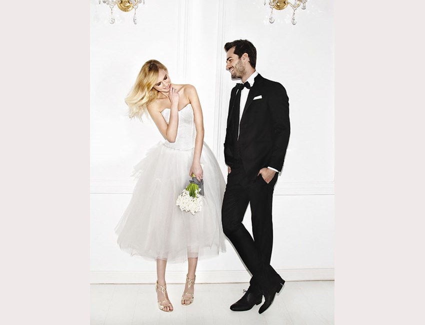 FELIPE: Σμόκιν, πουκάμισο, γιλέκο, παπιγιόν, μανικετόκουμπα και ποσέτ, όλα Cerruti 1881, RITZI. Παπούτσια Boss, BOSS Stores.