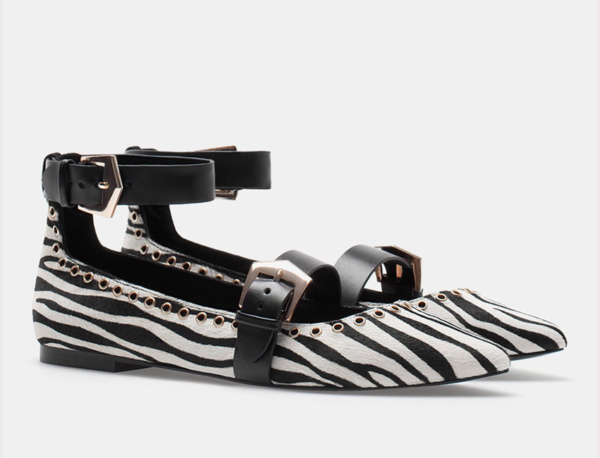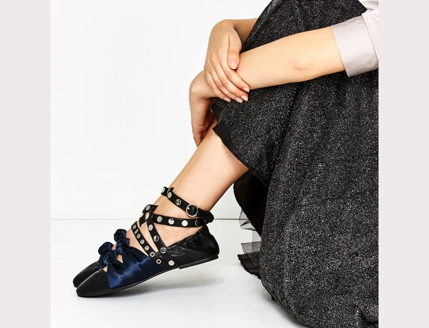 Το πιο κλασικό και διαχρονικό σχέδιο στα φλατ παπούτσια δέχεται μια ανανέωση εκ των έσω και κάπως έτσι προκύπτει μία από τις μεγαλύτερες τάσεις της σεζόν. Εμπνευστής αυτής της ιδέας ήταν η Miuccia Prada μέσα από τον οίκο Miu Miu, καθώς στο καλοκαιρινό της show για το '16, παρουσίασε την ροκ εκδοχή των ρομαντικών -κατα τ'άλλα- μπαλαρίνων, λανσάροντάς τις με λουριά και τρουκς και καρφιά. Σύντομα το σχέδιο έγινε "viral" στους δρόμους των μεγαλουπόλεων, καθώς αγαπήθηκε και φορέθηκε από τις περισσότερες fashionistas. Και κάπως έτσι μια σειρά από διάφορα highstreet brands λάνσαραν τις δικές τους οικονομικές εκδοχές του εν λόγω σχεδίου.