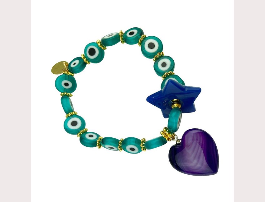 Donna Bracelet with Green Evil Eyes and Charms Katerina Psoma