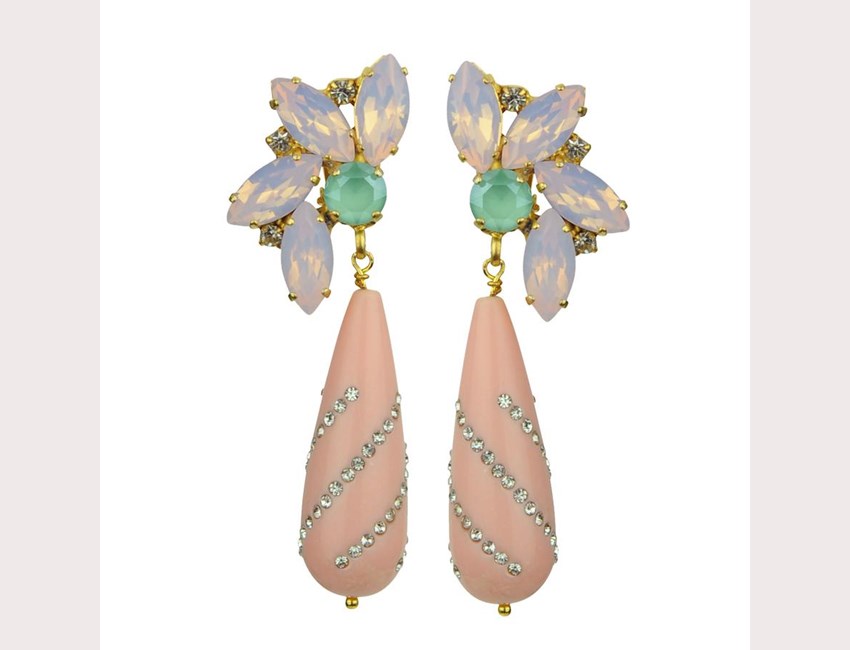 Stelene Pink Drop and Crystal Dangle Earrings Katerina Psoma