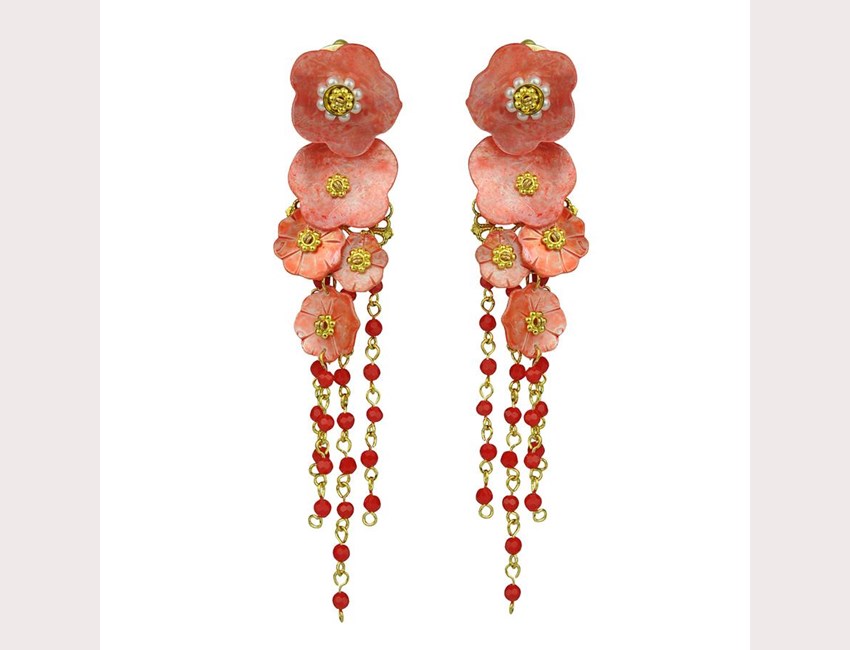 Antheia Orange Dangle Earrings with Red Beads Katerina Psoma