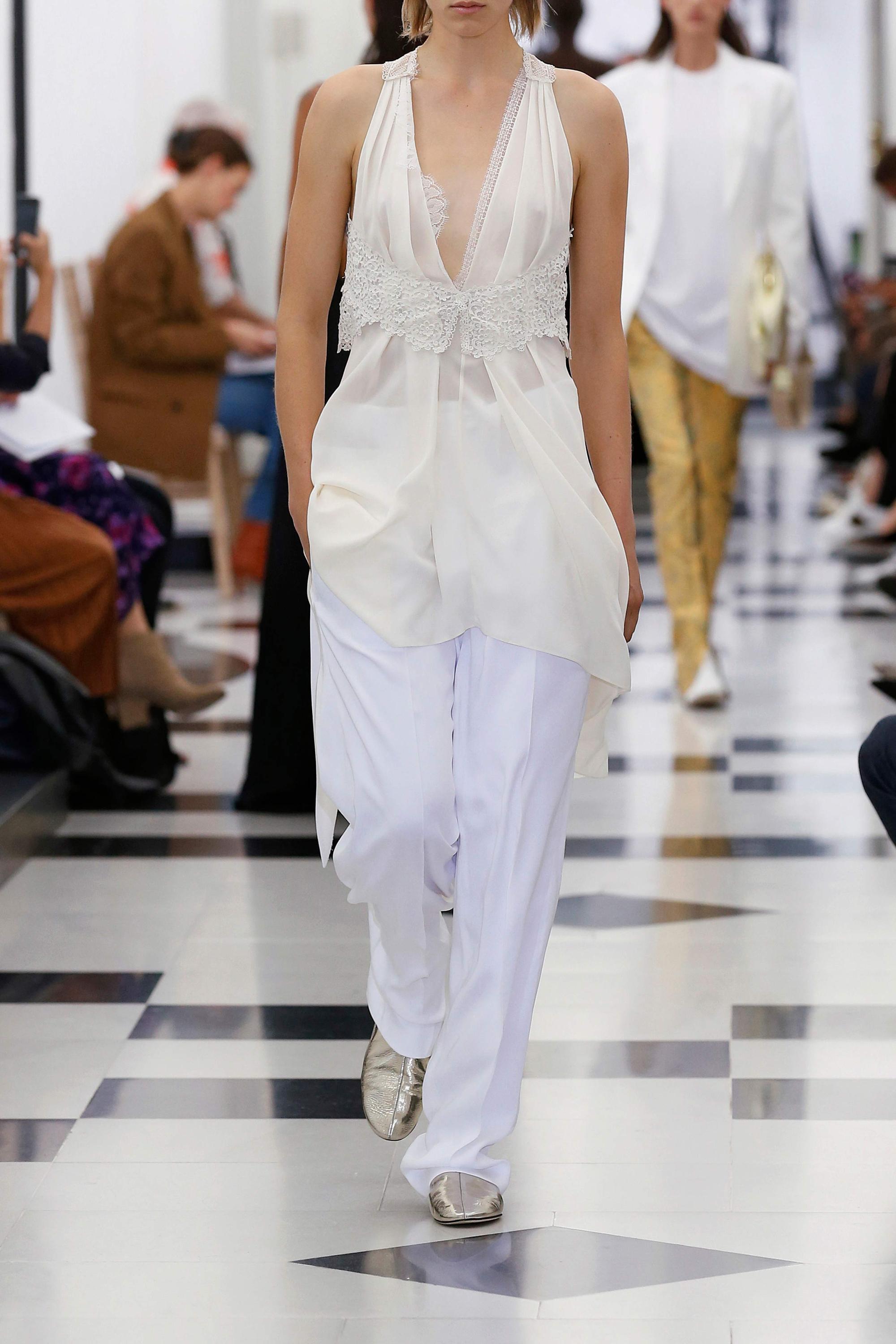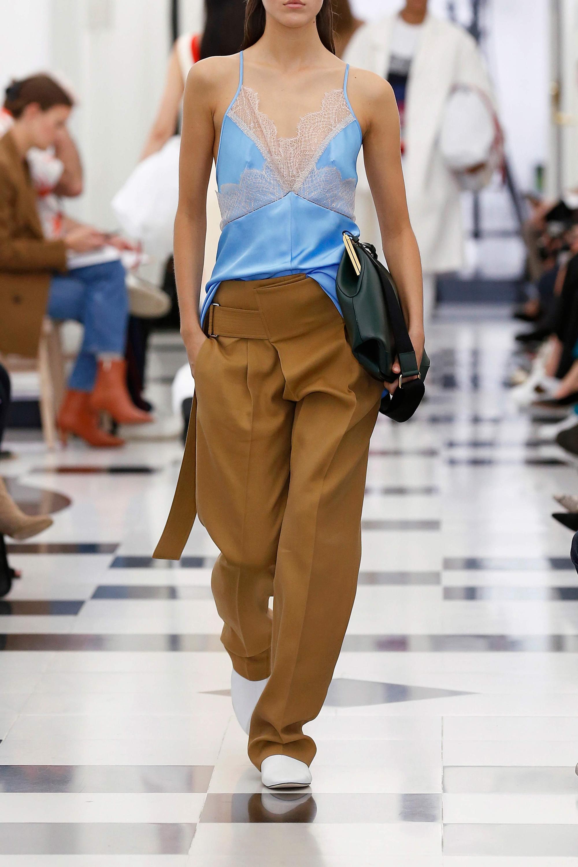 Από τη συλλογή ξεχωρίσαμε τις χαρακτηριστικές oversized τσάντες, τα loose jackets και στενά παντελόνια. Σχεδόν όλα τα μοντέλα φορούσαν metallic μπότες ή flats.