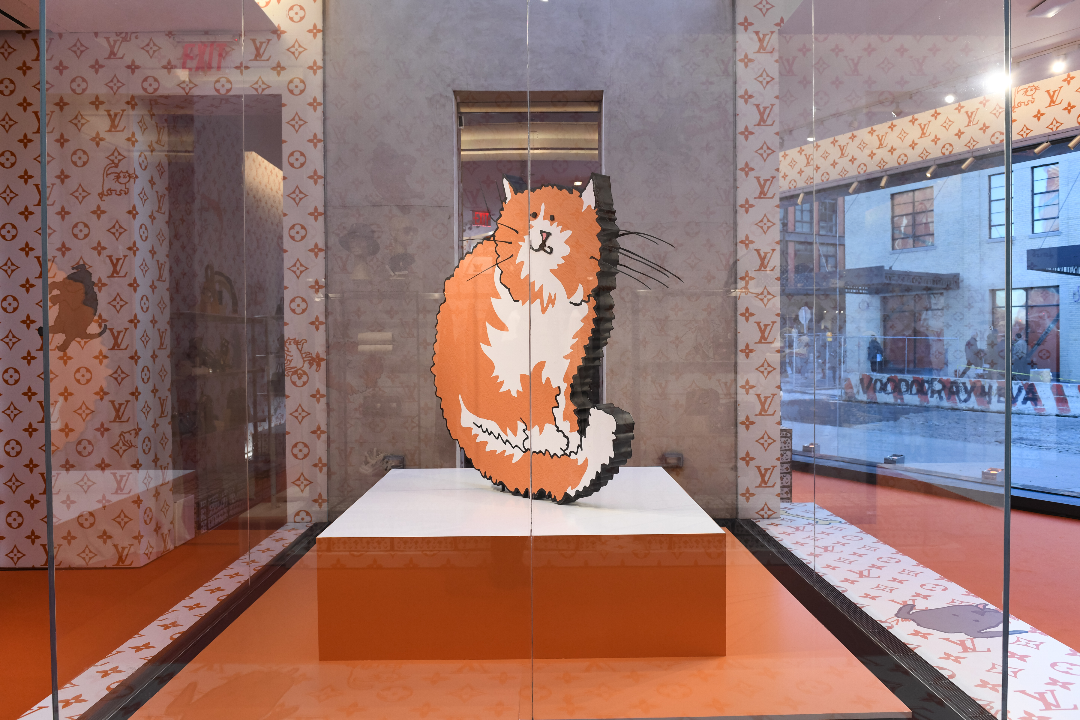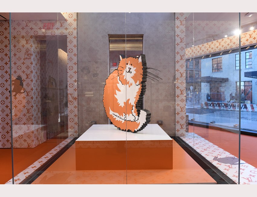 Πρόκειται για μια boutique ιδιαίτερης αισθητικής το design του οποίου εμπνεύστηκε η Grace Coddington από την αγάπη της για τις γάτες. Ναι, καλά διάβασες, δεν είναι άλλωστε η πρώτη φορά που οι γάτες παίζουν κεντρικό ρόλο στη μόδα. Η θρυλική fashion editor συνεργάστηκε με τον καλλιτεχνικό διευθυντή του Louis Vuitton, Nicolas Ghesquière και εκτός από τη διακόσμηση του εν λόγω pop up store, ανέλαβαν να φτιάξουν και την "Catogram" capsule collection που πωλείται εκεί και περιλαμβάνει σχέδια διακοσμημένα με ζωγραφιές των Pumpkin και Blanket -που είναι οι γάτες της Coddington- και του Leon, του σκύλου του Ghesquière. Στη συλλογή μπορεί κανείς να βρει δερμάτινα είδη, αξεσουάρ, παπούτσια αλλά και κάποια ρούχα, όλα με τα illustrations που έχει σχεδιάσει η Grace Coddington στο χέρι. Ανάμεσά τους βρίσκονται οι πιο iconic τσάντες του Οίκου, όπως η Speedy, αλλά και κάποια από τα νέα σχέδια, που έχουν ήδη γίνει κλασικά, όπως η Petite Malle.