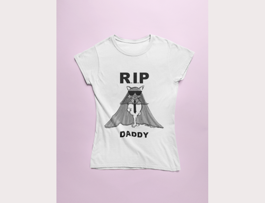 Πιο συγκεκριμένα, μέσα από την ιστοσελίδα choupettesdiary πωλούνται μία σειρά από μπλούζες, θήκες κινητών τηλεφώνων και κούπες με τη Choupette να θρηνεί φορώντας βέλο και δίπλα της να αναγράφεται η φράση "RIP daddy".