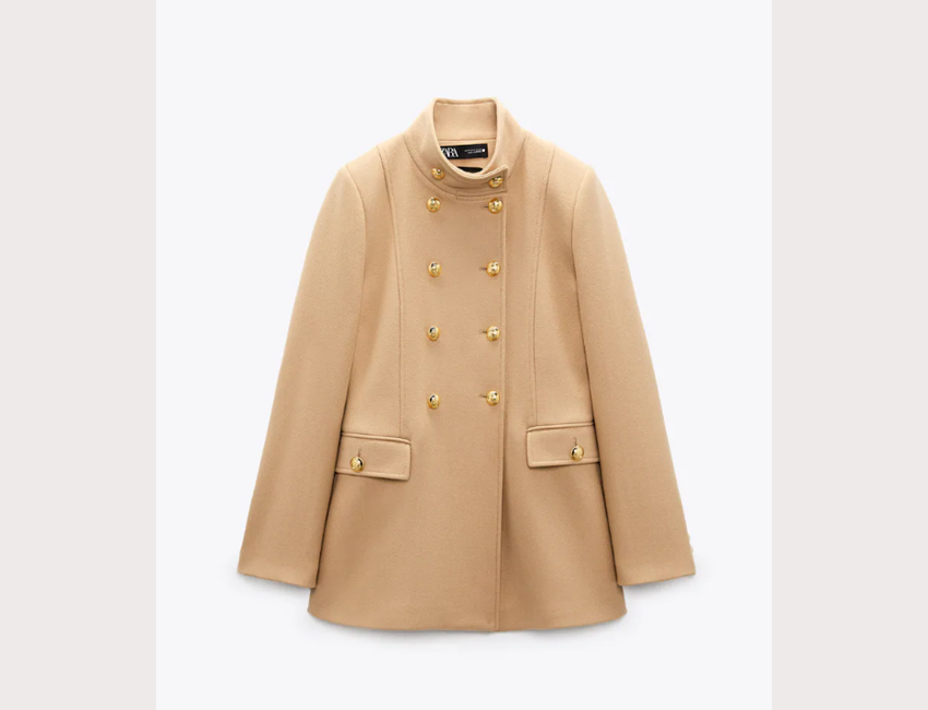 Μάλλινο παλτό με χρυσά κουμπιά Zara