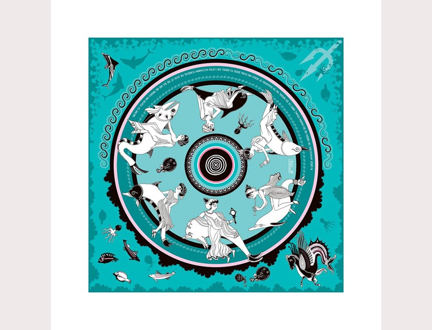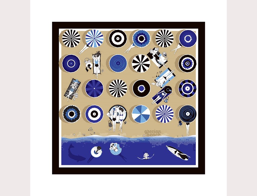 Με σπουδές στο graphic design και το 2D cartoon animation, η Έλενα Ζουρνατζή έχει συνεργαστεί με τον οίκο Hermes με τις Grecian Chic φιγούρες της να κοσμούν τις βιτρίνες του. Παρόλο όμως που ο ψηφιακός κόσμος προσφέρει περισσότερες ευκολίες, η graphic designer προτιμά να σχεδιάζει στο χαρτί με μολύβι και στη συνέχεια τα χρώματα και τα μοτίβα της να αποτυπώνονται στα μαντήλια, τα οποία δημιουργούνται από 100% μετάξι.