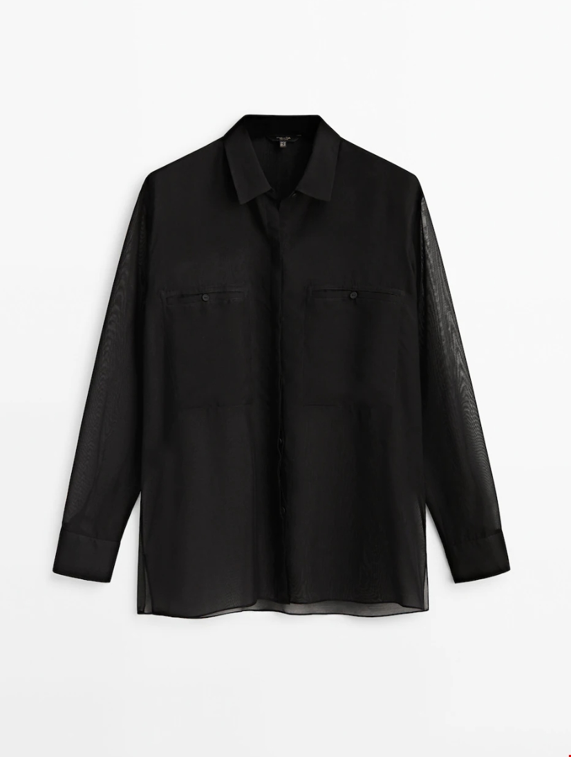 Μαύρο ημιδιάφανο πουκάμισο με τσέπες Massimo Dutti