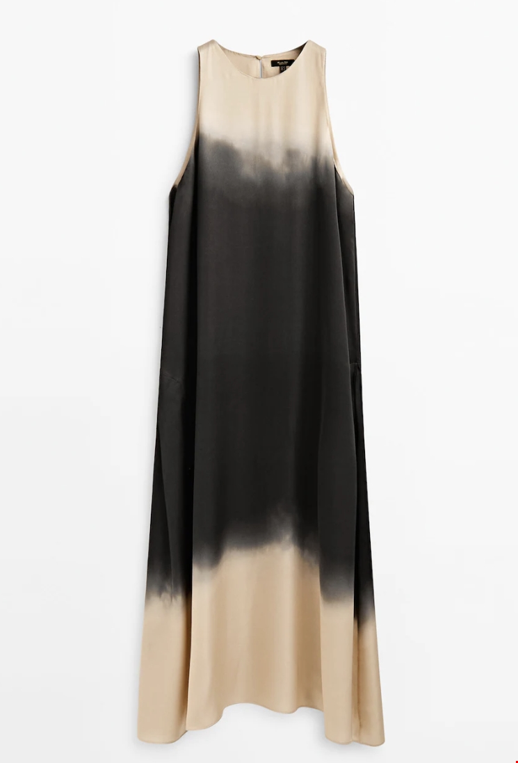 Μακρύ αμάνικο εμπριμέ φόρεμα Massimo Dutti