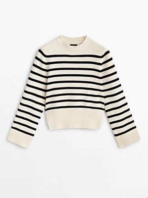 Πλεκτό πουλόβερ με ρίγες και στρογγυλή λαιμόκοψη Massimo Dutti