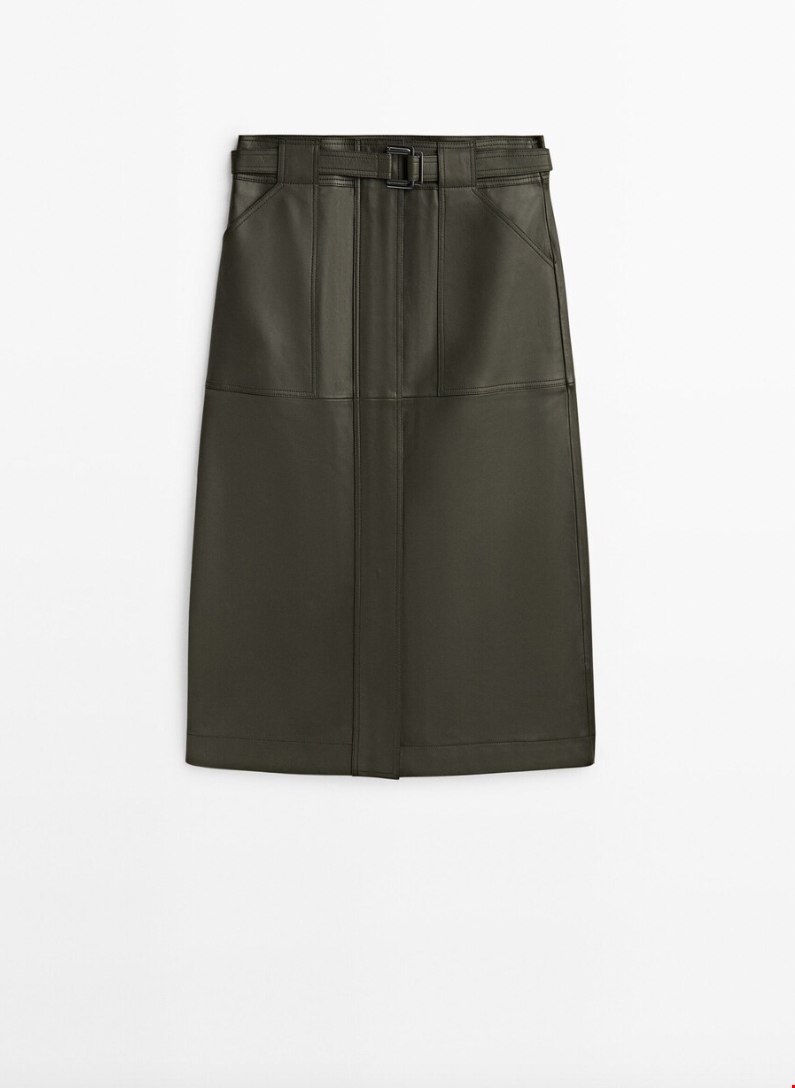 Φούστα από δέρμα νάπα με τσέπες Massimo Dutti