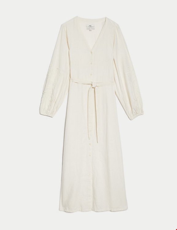 Μίντι φόρεμα με λαιμόκοψη V και κέντημα με υψηλή περιεκτικότητα σε λινό Marks & Spencer