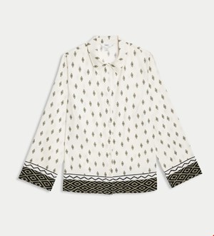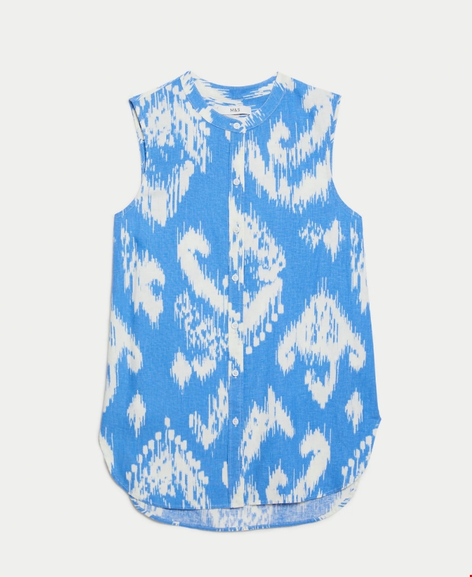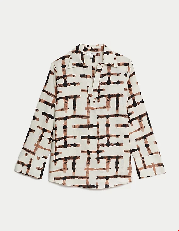 Εμπριμέ μπλούζα σε στυλ πουκαμίσας με λαιμόκοψη V, με υψηλή περιεκτικότητα σε λινό Marks & Spencer