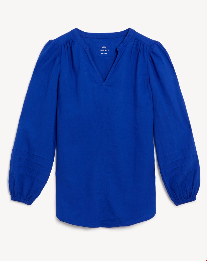 Μπλούζα με φαρδιά μανίκια, λαιμόκοψη V και υψηλή περιεκτικότητα σε λινό Marks & Spencer