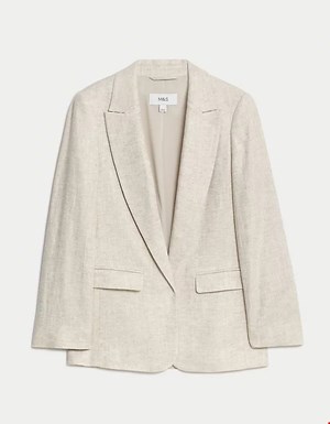 Μπλέιζερ με μονή σειρά κουμπιών σε χαλαρή γραμμή από σύμμεικτο λινό Marks & Spencer