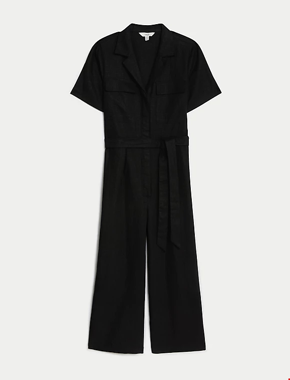 Ολόσωμη φόρμα με μεγάλες τσέπες και ζώνη από σύμμεικτο λινό Marks & Spencer