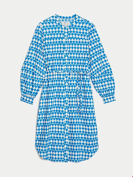 Εμπριμέ μίντι φόρεμα-πουκάμισο με υψηλή περιεκτικότητα σε λινό Marks & Spencer