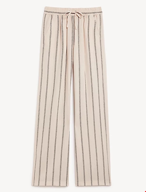 Ριγέ παντελόνι με φαρδιά μπατζάκια και υψηλή περιεκτικότητα σε λινό Marks & Spencer