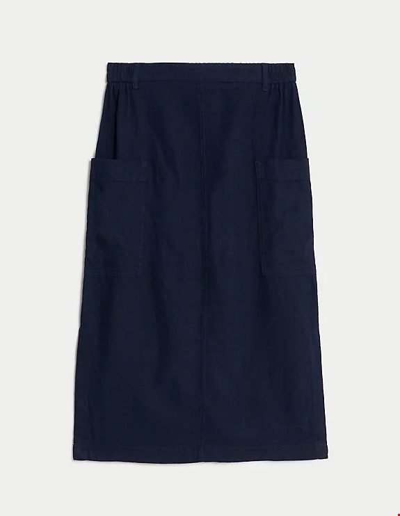 Μίντι φούστα με μεγάλες τσέπες, με υψηλή περιεκτικότητα σε λινό Marks & Spencer