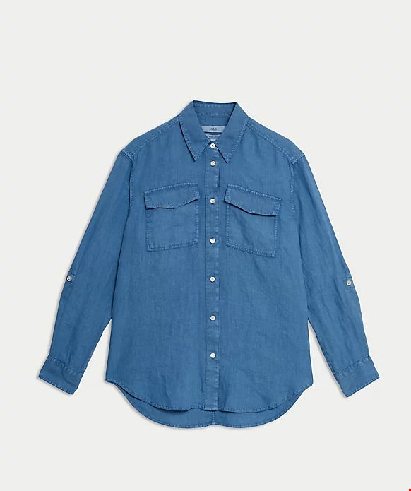 Πουκάμισο με μεγάλες τσέπες σε χαλαρή εφαρμογή από 100% λινό Marks & Spencer