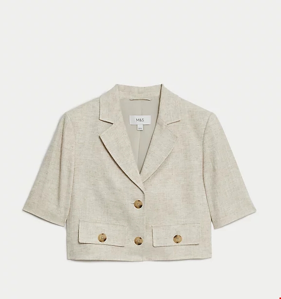 Μπλέιζερ crop με κοντό μανίκι από σύμμεικτο λινό Marks & Spencer
