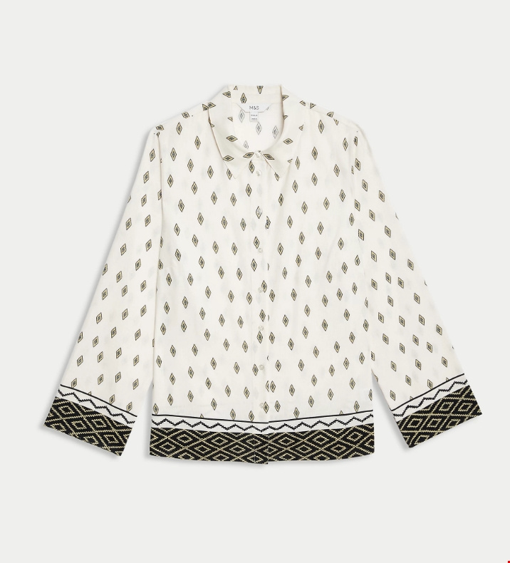 Εμπριμέ πουκάμισο με κουμπιά σε όλο το μήκος, με υψηλή περιεκτικότητα σε λινό Marks & Spencer