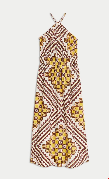 Μίντι μεσάτο φόρεμα με λαιμόκοψη που δένει πίσω από 100% βαμβάκι Marks & Spencer