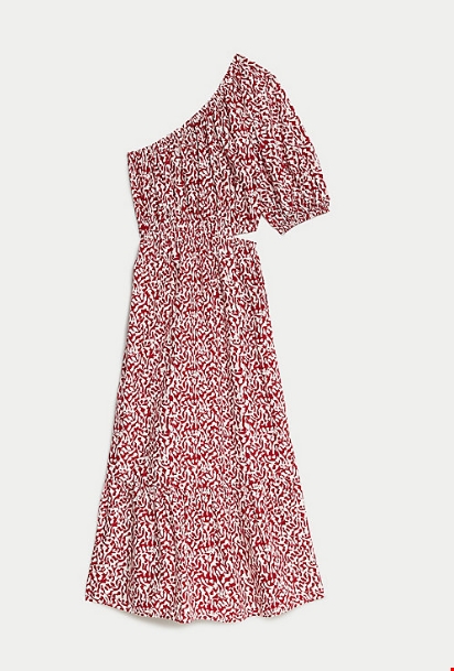 Φόρεμα παραλίας με έναν ώμο και print από 100% βαμβάκι Marks & Spencer