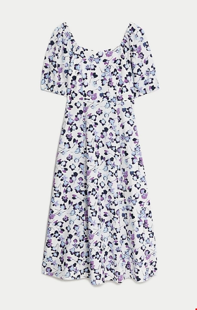 Μίντι φόρεμα με σούρες και με τετράγωνη λαιμόκοψη από 100% βαμβάκι Marks & Spencer