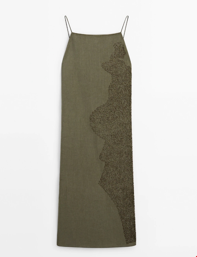 Μίντι φόρεμα από μείγμα λινού με κεντημένη λεπτομέρεια Massimo Dutti