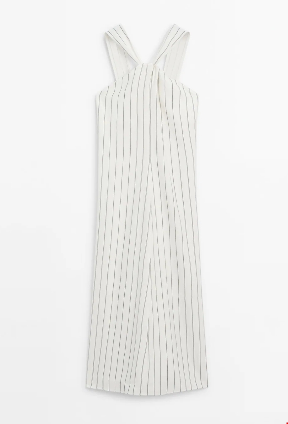 Μίντι ριγέ φόρεμα με λαιμόκοψη halter Massimo Dutti