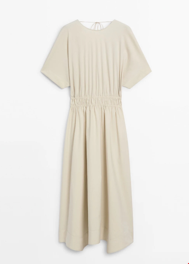 Φόρεμα με σουρωτό ντεκολτέ και δέσιμο πίσω Massimo Dutti