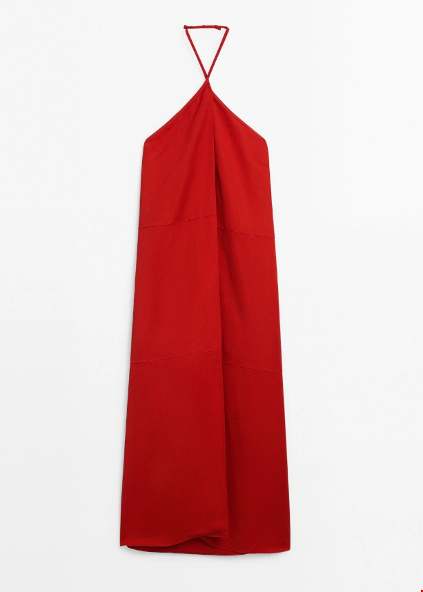 Μίντι φόρεμα με λαιμόκοψη halter και λεπτομέρεια πιέτες Massimo Dutti