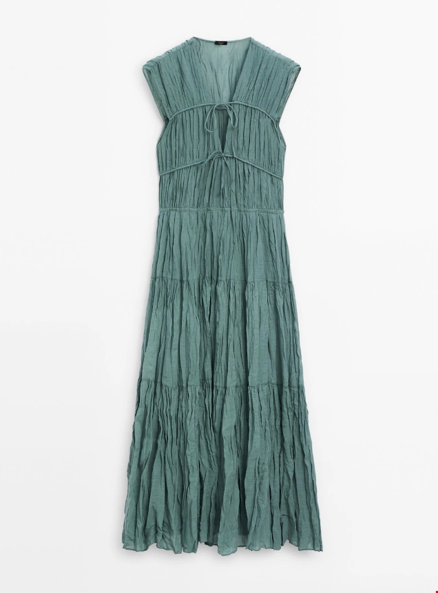 Πλισέ φόρεμα με λεπτομέρεια φιόγκους Massimo Dutti