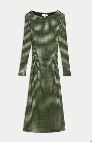 Ζέρσεϊ εμπριμέ μίντι φόρεμα με διχτυωτό υλικό σε ίσια γραμμή Marks & Spencer