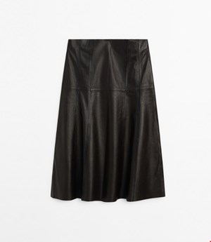 Μίντι φούστα από δέρμα νάπα με ραφές Massimo Dutti