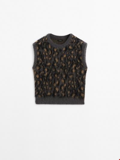 Γιλέκο animal print με αλπακά Massimo Dutti