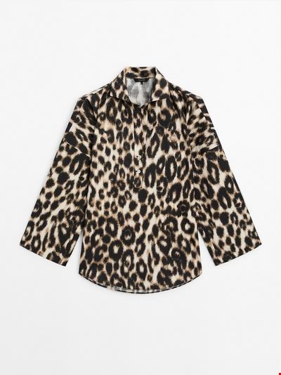 Πουκάμισο με γιακά πόλο animal print Massimo Dutti