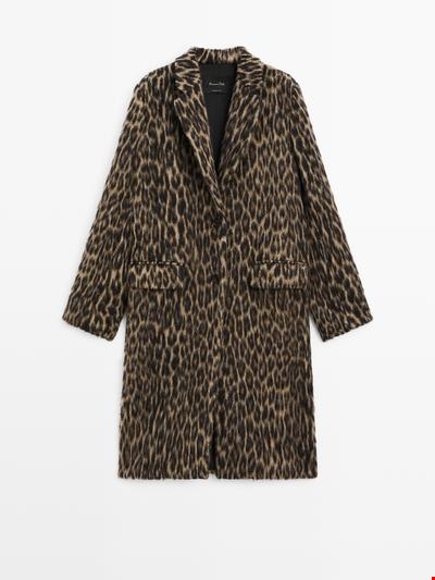Μακρύ παλτό με ανάγλυφη υφή animal print Massimo Dutti