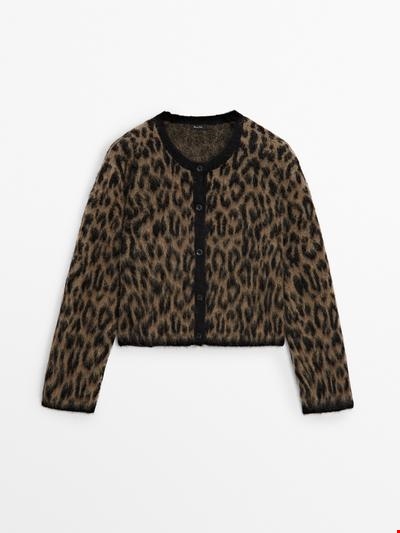 Ζακέτα animal print με μαλλί και αλπακά Massimo Dutti