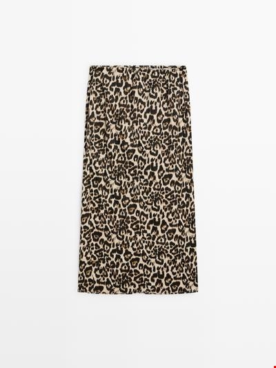 Μίντι φούστα animal print με σκίσιμο Massimo Dutti
