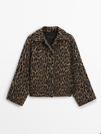 Κοντό παλτό animal print με γιακά με πέτα Massimo Dutti