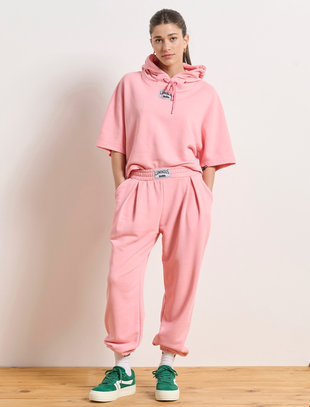 Η συλλογή Beyond επίσης αποτελείται από πολύ μοντέρνα κομμάτια με athletic, vintage και sporty αισθητική στις αποχρώσεις του μπλε, του κόκκινου και του πράσινου. Τα δικά μας αγαπημένα κομμάτια είναι το αθλητικό crop top με το αντίστοιχο αθλητικό σόρτς, αλλά και το κοντομάνικο Polo που θα ταιριάζει τέλεια ακόμα και με το αγαπημένο σου τζιν παντελόνι. Όσον αφορά στη συλλογή Luminous, αποπνέει μία άκρως ανοιξιάτικη διάθεση λόγω των pastel αποχρώσεις. Ειδικά η κοντομάνικη μπλούζα με δέσιμο μπροστά και η ψηλόμεση jogger φόρμα σε baby blue απόχρωση είναι μία προσθήκη που σίγουρα αξίζει να κάνεις στη συλλογή σου, όπως επίσης και το κοντομάνικο cropped φούτερ με κουκούλα σε ροζ απόχρωση.
