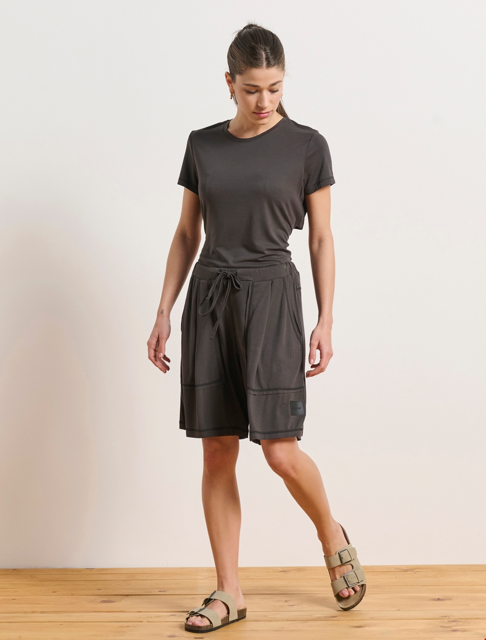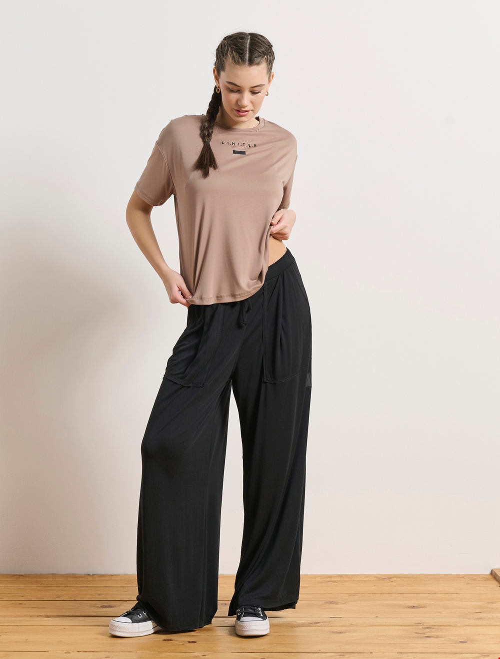 Ρίχνοντας μία ματιά στο ηλεκτρονικό κατάστημα της BodyTalk, ξεχωρίσαμε αρχικά τα κομμάτια από τη Limited συλλογή, που αποτελείται από κομμάτια με ελαφρύ ύφασμα modal σε αποχρώσεις όπως το μαύρο, το noisette και το coal και είναι εμπνευσμένη από τον χορό και τις κινήσεις των χορευτών. Κάποια από τα κομμάτια που ξεχωρίσαμε είναι η κοντομάνικη εξώπλατη μπλούζα, η ψηλόμεση φαρδιά βερμούδα, αλλά και η ψηλόμεση φαρδιά φόρμα.