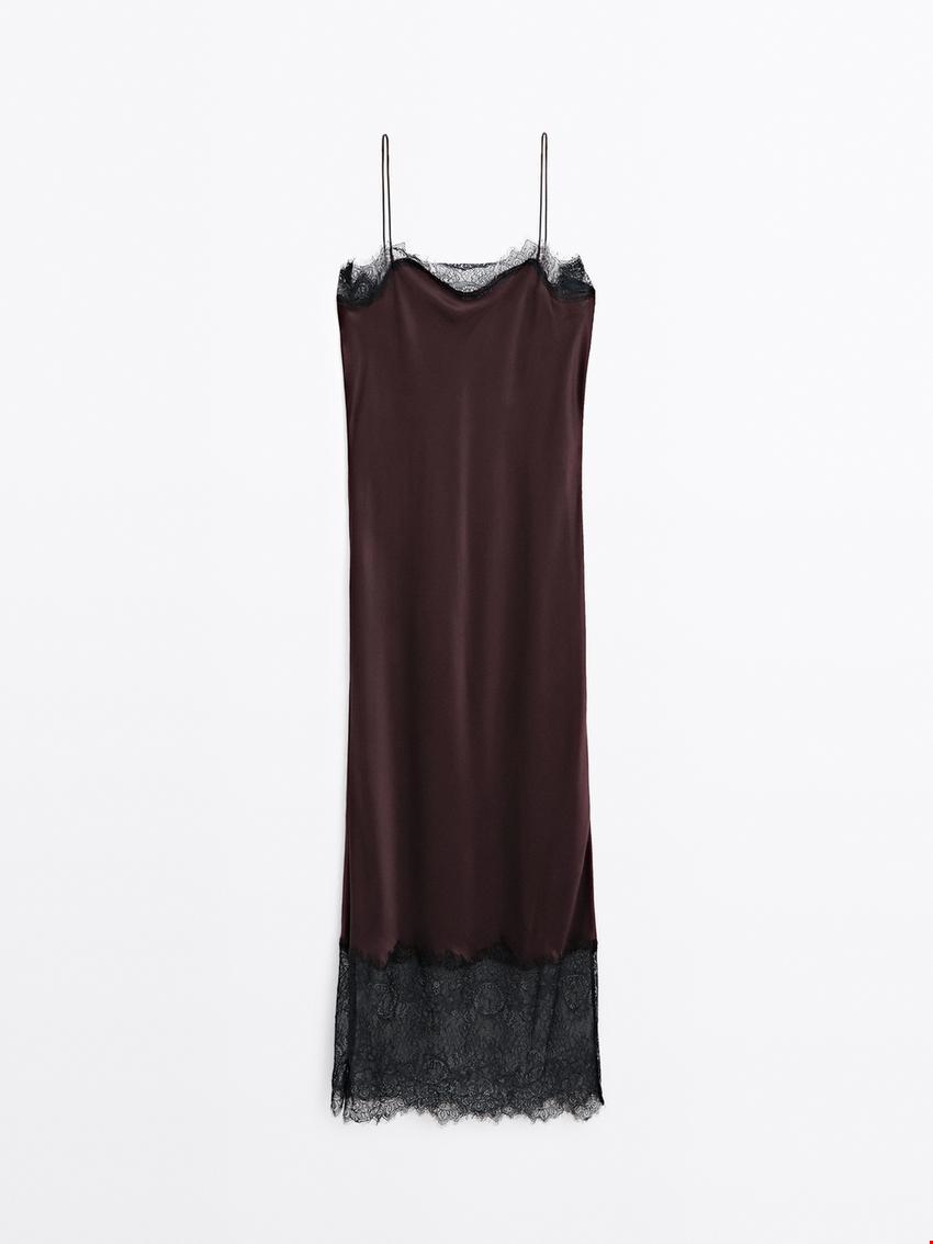 Μακρύ σατινέ φόρεμα σε στιλ lingerie Massimo Dutti